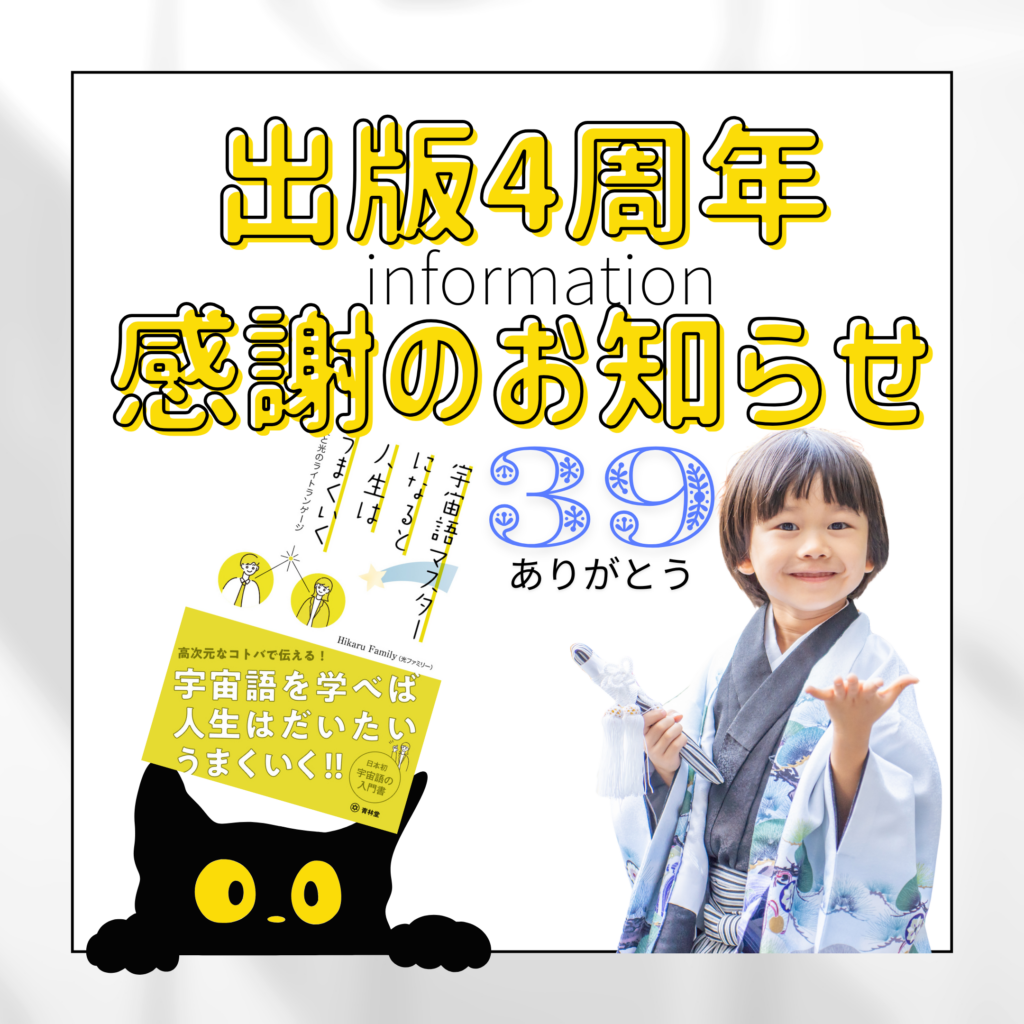![]() | 光ファミリーの皆様、宇宙元年に当たる本年にご出版されるということで、誠におめでとうございます。 心より応援いたします。 これからの宇宙時代にライトランゲージは必需品なので、共にもっともっと普及させていきましょう^_^ 宇宙連合ヤンガス https://mosh.jp/yangasu369/home |